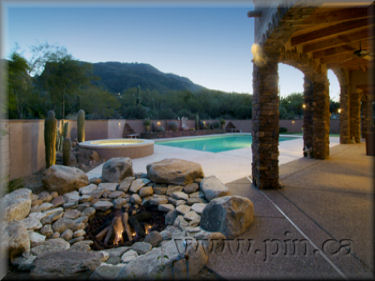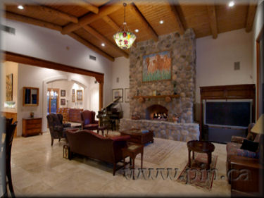 with its extensive use of ledge stone, 13' x 15' natural river-rock