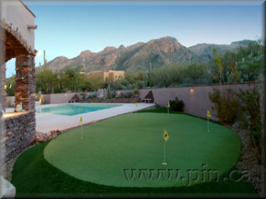 room with wet bar, pool and spa with stone fire pit, putting green,