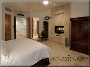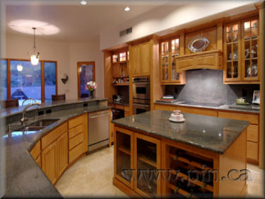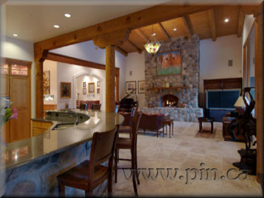 fireplace in great room, alder cabinets and doors throughout with