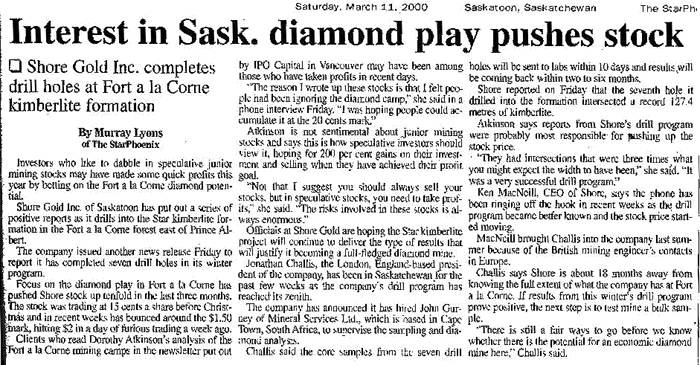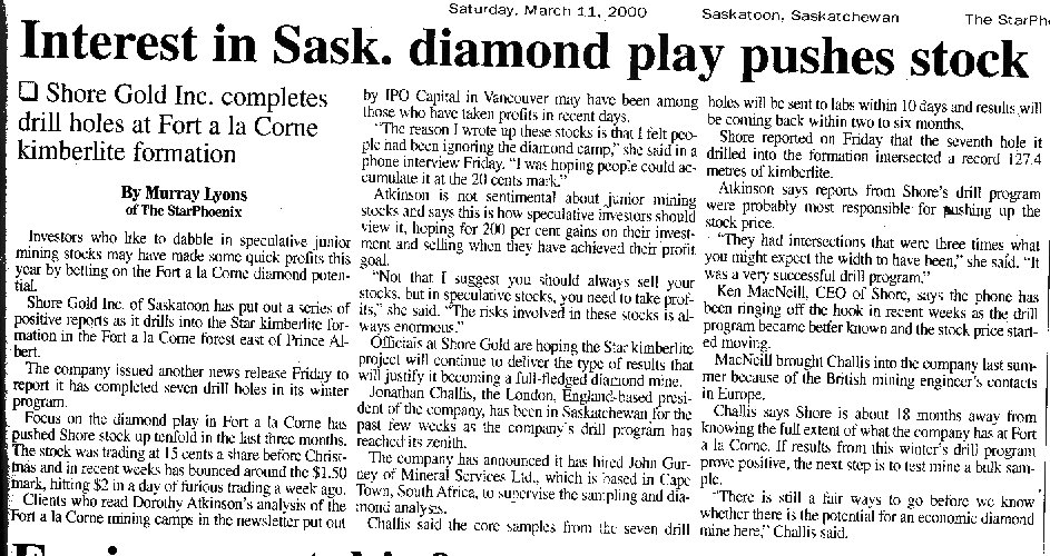 Corne, just 17 miles away from the Bear's Den... See Also www.shoregold.com for information about Shore Gold. |