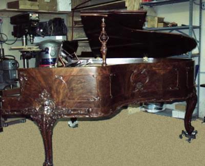 Completely rebuilt and refinished Louis XV in Walnut. Originally built October 8th, 1928. Restored March, 1999.