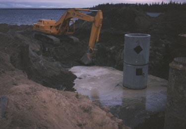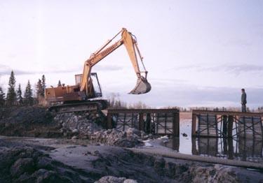 | Cribbing the reservoir at a water treatment plant Sturgeon Lake Reserve, 1993. | ![]() |